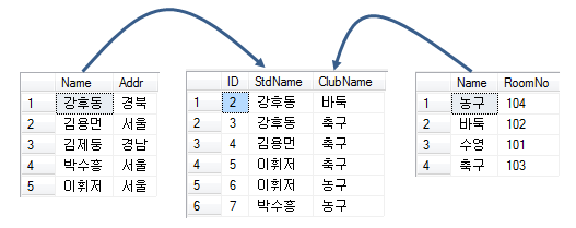 - -- 학생 테이블과 동아리 테이블의 PK들을 FK로 참조하고 있다